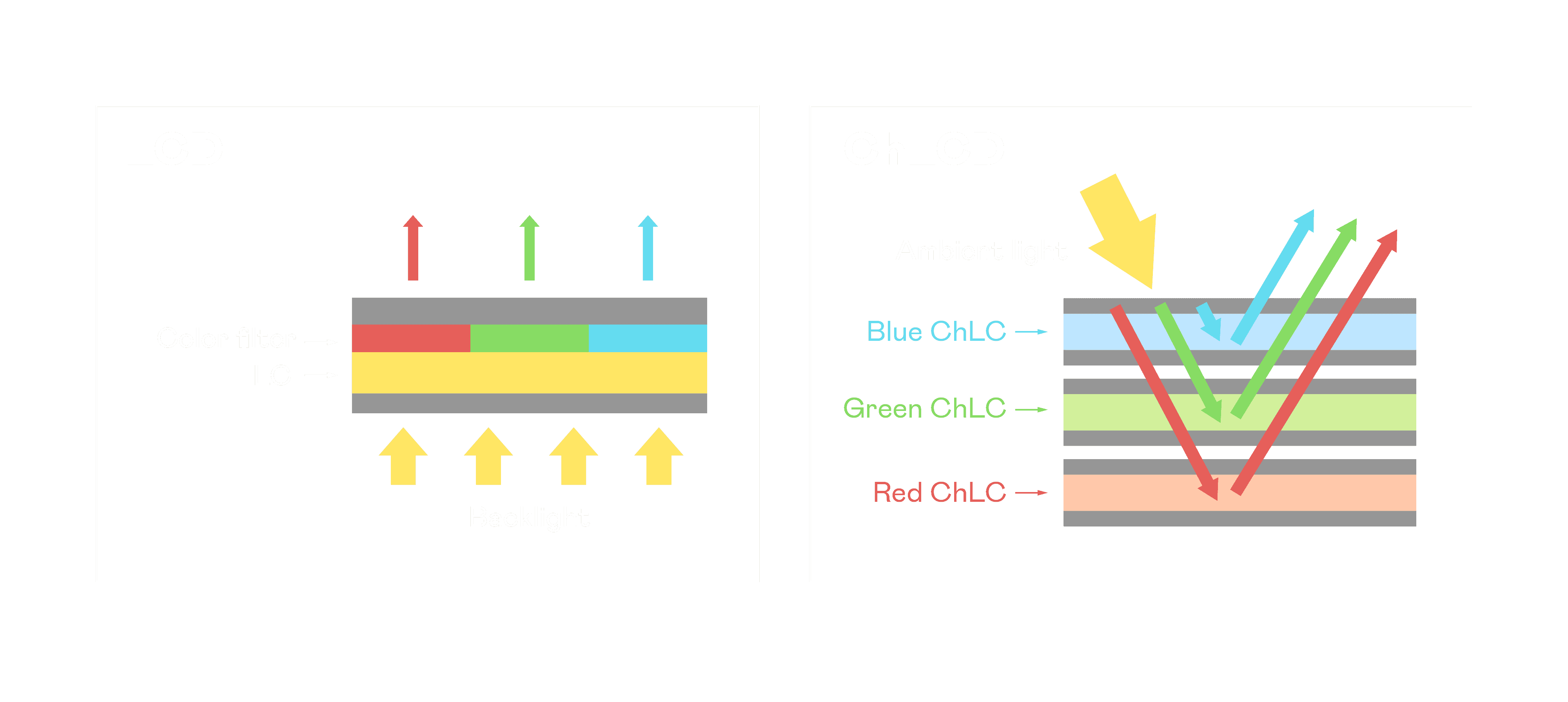 赏金国际胆固醇液晶显示器是由红、、、、绿、、、蓝三层胆固醇液晶面板堆叠而成,,,并采用无彩色滤光片设计,,,,减少环境光在反射过程中的损耗。。