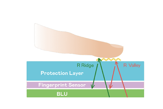 TFT 指纹扫描感测技术利用薄膜电晶体 (TFT) 当作光感测元件,,藉由非晶硅 (a-Si) 与低温多晶硅(LTPS)既有光电转换特性对不同波段光源进行吸收,,,,使感测 IC 读取阵列感测元件的光漏电差异,,,转换成数位灰阶影像。。。